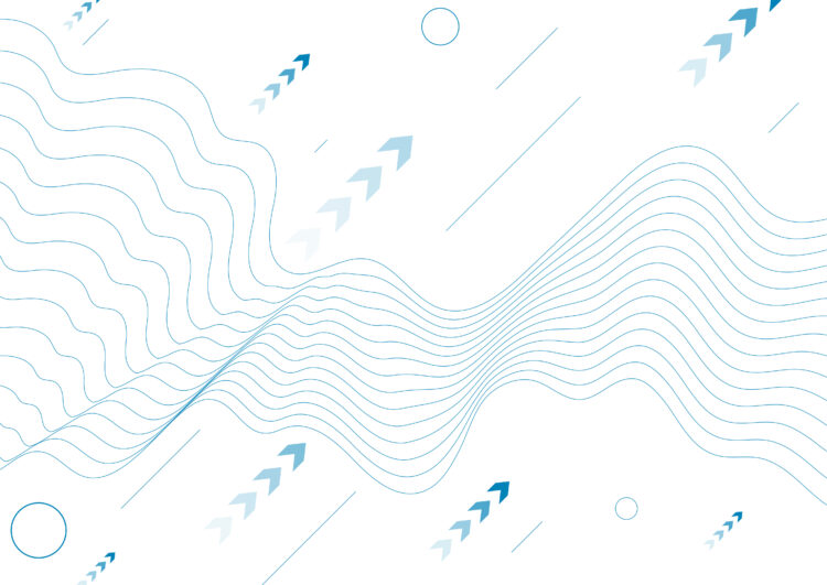 Technology minimal background with blue wavy lines and arrows. Futuristic vector design